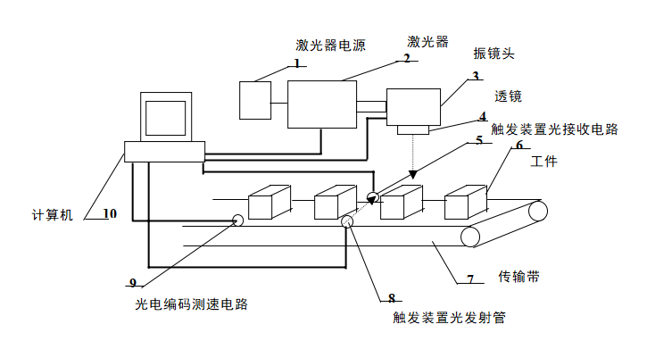 激光飛行打標系統就是為此需要而生的。激光飛行打標系統采用了高速振鏡對激光束焦點進行高速振動,同時對流水線的運動速度進行實時的檢測,計算機根據反饋回的信號計算出流水線上被加工工件由于運動所產生的位移偏差,對振鏡進行實時的修正,進而實現完美的打標效果。