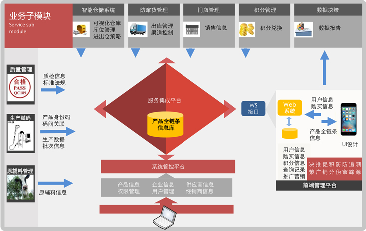 產(chǎn)品流通環(huán)節(jié)管理,針對不同的企業(yè)定制追蹤溯源結(jié)構(gòu),根據(jù)企業(yè)不同需求定制角色,分層次管理企業(yè)銷售、企業(yè)稽查、企業(yè)內(nèi)管,經(jīng)銷商、終端用戶等,精確至每件產(chǎn)品,定位于每件產(chǎn)品的流通環(huán)節(jié),可單節(jié)點(diǎn)把控。